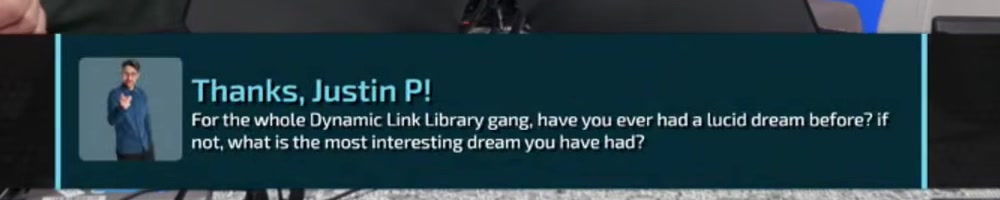 For the whole Dynamic Link Library gang, have you ever had a lucid dream before? if