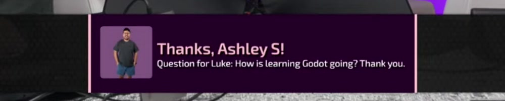 Question for Luke: How is learning Godot going? Thank you. | Timestamp |  |