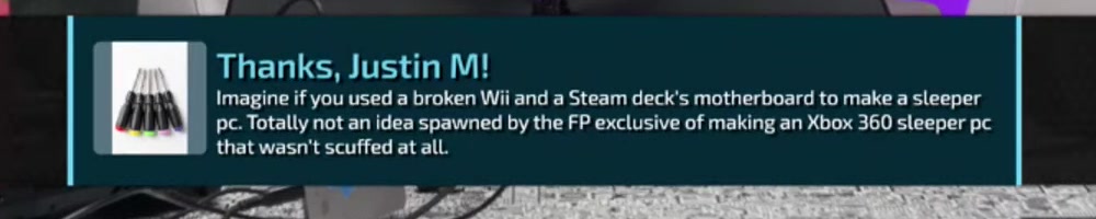 pc. Totally not an idea spawned by the FP exclusive of making an Xbox 360 sleeper pc