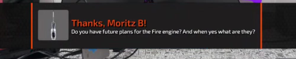 Do you have future plans for the Fire engine? And when yes what are they? | Timestamp |  |