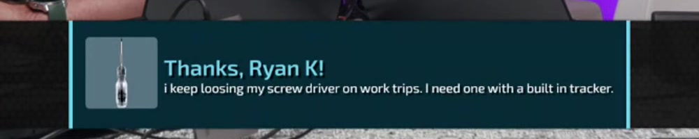 i keep loosing my screw driver on work trips. I need one with a built in tracker. | Timestamp |  |