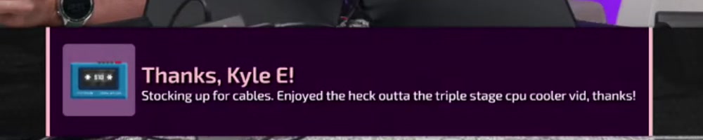 Stocking up for cables. Enjoyed the heck outta the triple stage cpu cooler vid, thanks! | Timestamp |  |