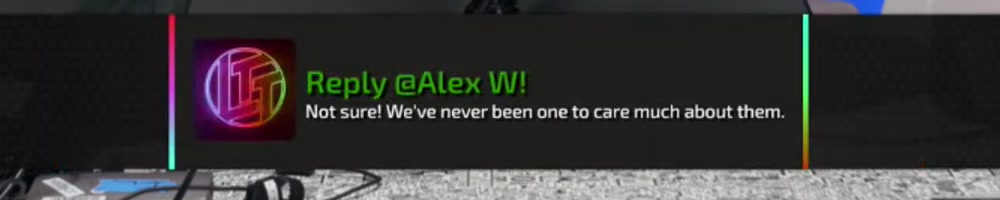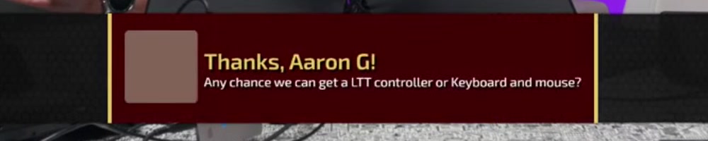 Any chance we can get a LTT controller or Keyboard and mouse? | Timestamp |  |