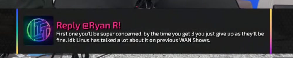 "anyways" instead of "anyway" as if he's a 13yr old girl and Linus saying "Three Ex"