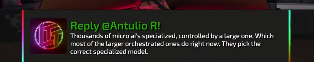 Thousands of micro ai's specialized, controlled by a large one. Which