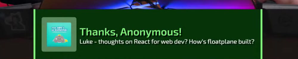 Luke - thoughts on React for web dev? How's floatplane built? | Timestamp |  |