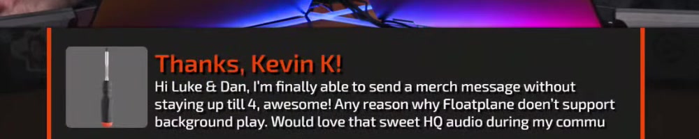 Hey wan.dmg! Dan: How about a video or a floatplane exclusive where