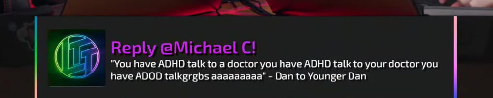 have ADOD talkgrgbs aaaaaaaaa" - Dan to Younger Dan | Timestamp |  |