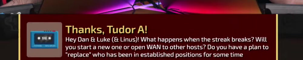 Hey Dan & Luke (& Linus)! What happens when the streak breaks? Will