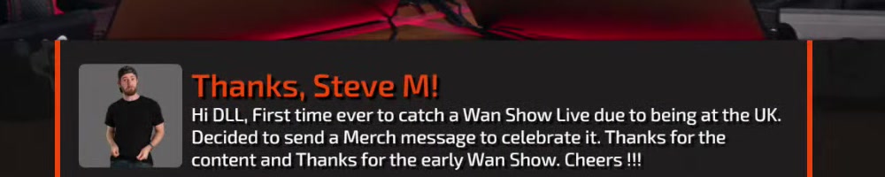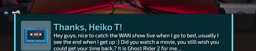 Hey guys, nice to catch the WAN show live when I go to bed, usually I