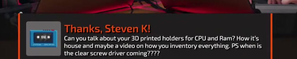 Can you talk about your 3D printed holders for CPU and Ram? How it's