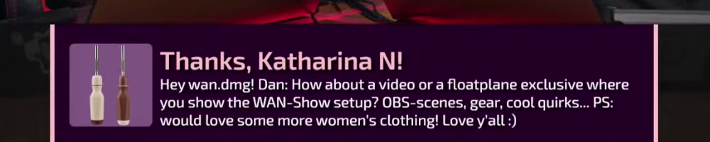 you show the WAN-Show setup? OBS-scenes, gear, cool quirks... PS: