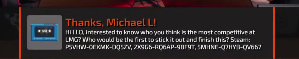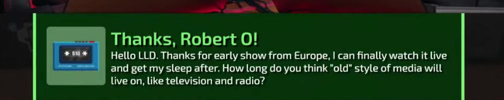 Hello LLD. Thanks for early show from Europe, I can finally watch it live