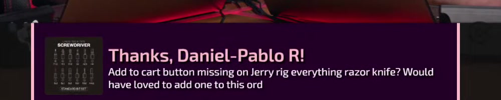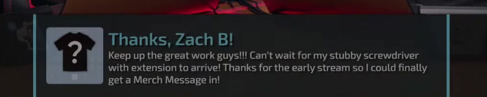Hi Luke & Dan, I'm finally able to send a merch message without