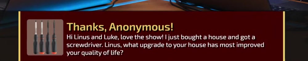 Hi Linus and Luke, love the show! I just bought a house and got a