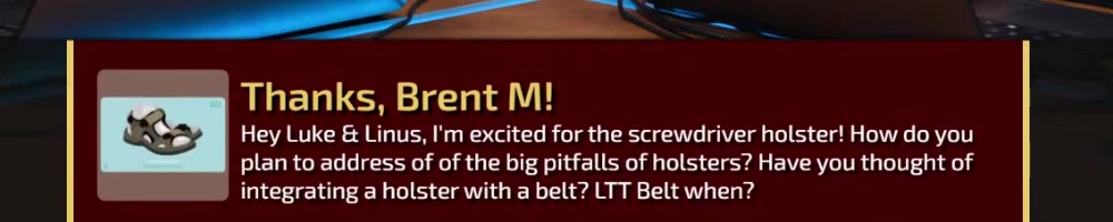 Hey Luke & Linus, I'm excited for the screwdriver holster! How do you