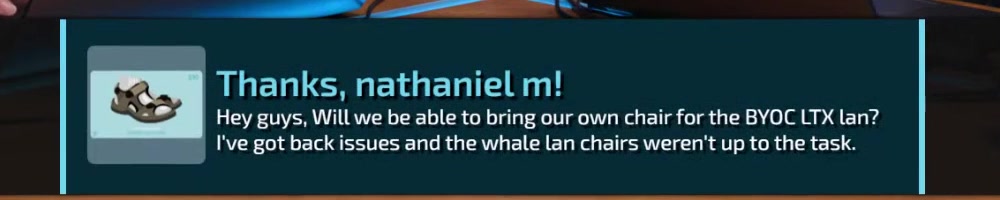 Hey guys, Will we be able to bring our own chair for the BYOC LTX lan?