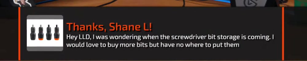 Hey LLD, I was wondering when the screwdriver bit storage is coming. I