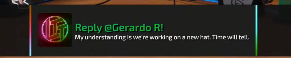 My understanding is we're working on a new hat. Time will tell. | Timestamp |  |
