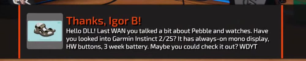 Hello DLL! Last WAN you talked a bit about Pebble and watches. Have