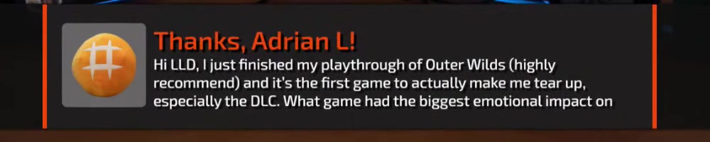 Hi LLD, I just finished my playthrough of Outer Wilds (highly
