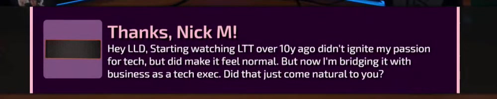 Hey LLD, Starting watching LTT over 10y ago didn't ignite my passion