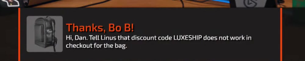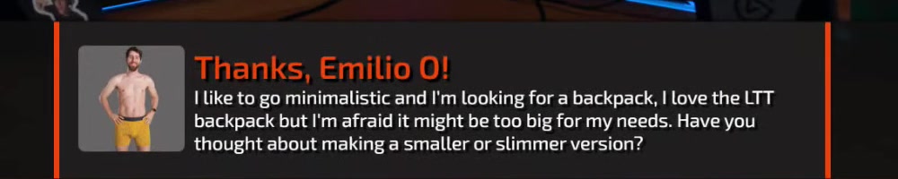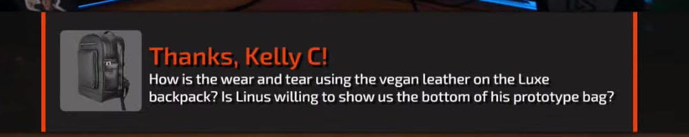 backpack? Is Linus willing to show us the bottom of his prototype bag? | Timestamp |  |