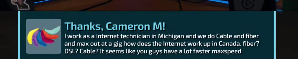 and max out at a gig how does the Internet work up in Canada. fiber?