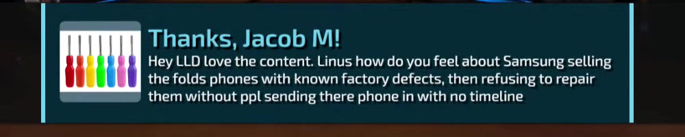 Hey LLD love the content. Linus how do you feel about Samsung selling