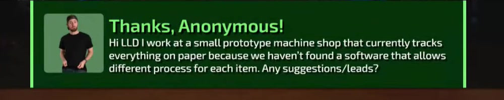 Hi LLD I work at a small prototype machine shop that currently tracks