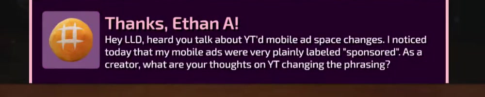 Hey LLD, heard you talk about YT'd mobile ad space changes. I noticed