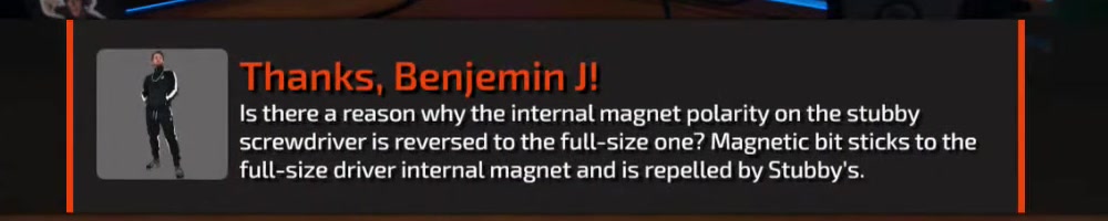 screwdriver is reversed to the full-size one? Magnetic bit sticks to the
