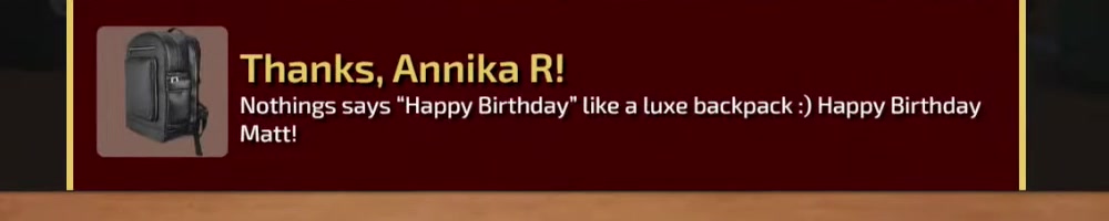 It'll match the Harley. the rest are gifts | Timestamp |  |