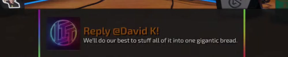 We'll do our best to stuff all of it into one gigantic bread. | Timestamp |  |