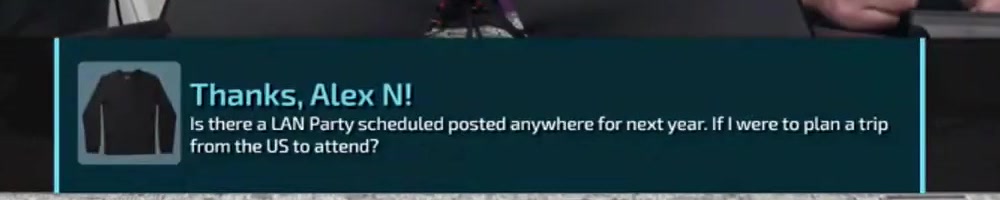 Alex N message Thanks, Alex N! Is there a LAN Party scheduled posted anywhere for next year. If I were to plan a trip from the US to attend? Timestamp