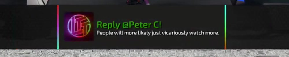 Peter C reply Reply @Peter C! People will more likely just vicariously watch more. Timestamp