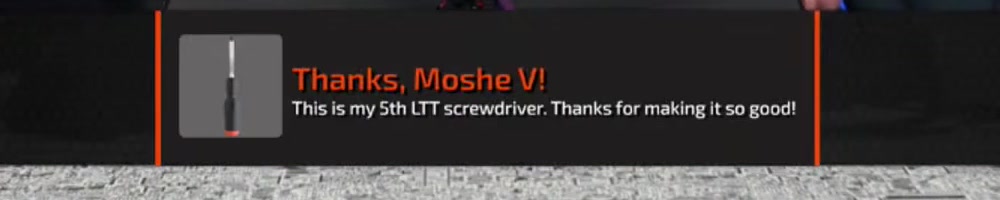 Moshe V message Thanks, Moshe V! This is my 5th LTT screwdriver. Thanks for making it so good! Timestamp