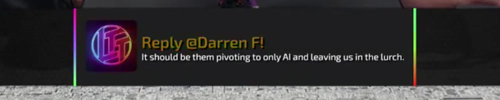 Darren F reply Reply @Darren F! It should be them pivoting to only Al and leaving us in the lurch. Timestamp
