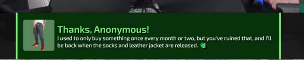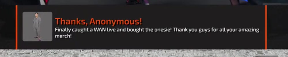 Anonymous message Thanks, Anonymous! Finally caught a WAN live and bought the onesie! Thank you guys for all your amazing merch! Timestamp