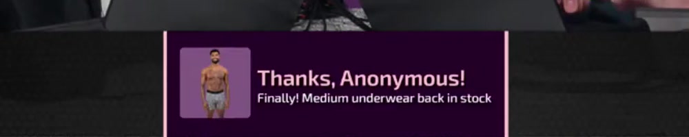 Anonymous message Thanks, Anonymous! Finally! Medium underwear back in stock Timestamp