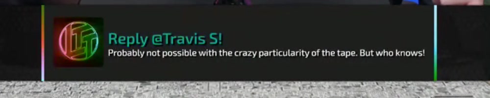 Travis S reply Reply @Travis S! Probably not possible with the crazy particularity of the tape. But who knows! Timestamp