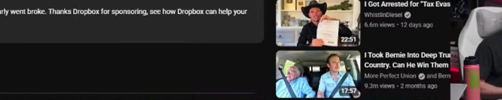 null message Thanks Dropbox for sponsoring, see how Dropbox can help your 22:51 17:57 I Got Arrested for "Tax Evas WhistlinDiesel 6.6m views - 12 days ago I Took Bernie Into Deep Trui Country. Can He Win Them More Perfect Union and Bern 9.3m views - 2 months ago Timestamp