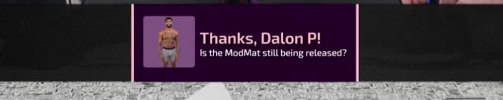 Dalon P message Thanks, Dalon P! Is the ModMat still being released? Timestamp