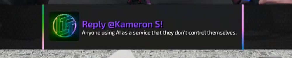 Kameron S reply Reply @Kameron S! Anyone using Al as a service that they don't control themselves. Timestamp