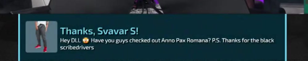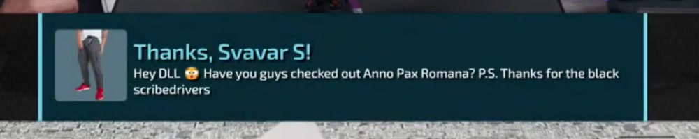 Svavar S message Thanks, Svavar S! Hey DLL Have you guys checked out Anno Pax Romana? P.S. Thanks for the black scribedrivers Timestamp