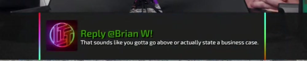 Brian W reply Reply @Brian W! That sounds like you gotta go above or actually state a business case. Timestamp