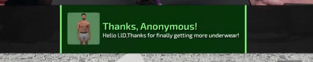 Anonymous message Thanks, Anonymous! Hello LID,Thanks for finally getting more underwear! Timestamp
