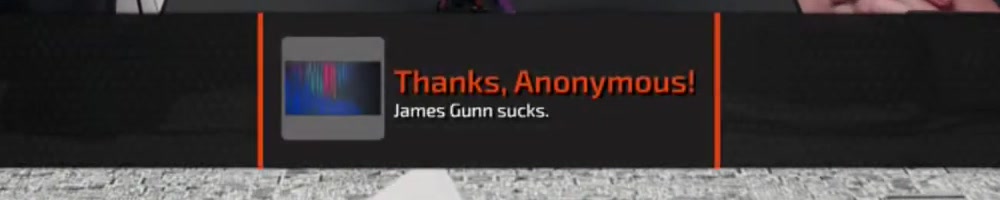 Anonymous message Thanks, Anonymous! James Gunn sucks. Timestamp