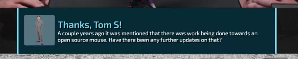 Tom S message Thanks, Tom S! A couple years ago it was mentioned that there was work being done towards an open source mouse. Have there been any further updates on that? Timestamp