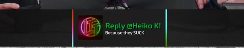 Heiko K reply Reply @Heiko K! Because they SUCK Timestamp
